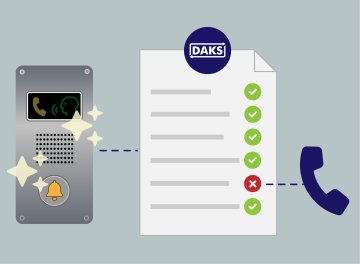 Aufzugeinschlüsse lassen sich leider nicht mit völliger Sicherheit ausschließen. Damit der Notfallplan im Ernstfall aber reibungslos ablaufen kann, muss die Funktionalität des Aufzugsnotrufs regelmäßig überprüft werden. DAKS kann das täglich sowohl für analoge als auch für digitale Sprechstellen übernehmen. Bei einem negativen Testergebnis ruft DAKS automatisch ein Servicetechniker an, der dann Reparaturen vornehmen kann.