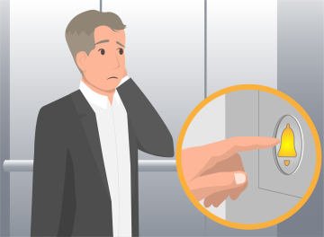 Herr Schmidt befindet sich im Aufzug auf dem Weg in den 4. Stock, als es plötzlich ruckelt und der Lift zum Stillstand kommt. Er hat das gewünschte Stockwerk noch nicht erreicht und auch, als er die verschiedenen Knöpfe der Etagen drückt, passiert nichts. Verunsichert drückt er dann also auf den Knopf mit dem gelben Glöckchen.