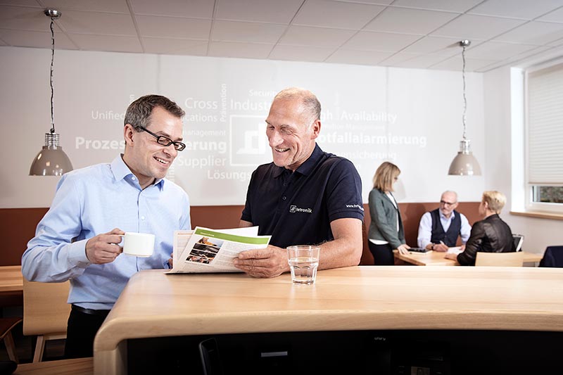 Das heißt, unsere Produkte helfen Menschen und optimieren Abläufe sowohl in kleinen und mittelständischen Betrieben, wie beispielsweise einem Pflegeheim, als auch im weltweiten Konzern oder am Großflughafen.