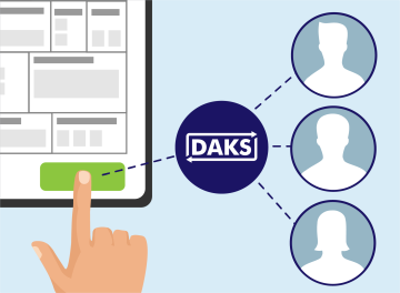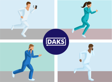 David answers the call and fills out a digital form during the conversation, providing information on the gender, age and condition of the seriously injured person. At the touch of a button, DAKS then creates a coherent announcement text from the form information. When David confirms the text, DAKS automatically calls the necessary doctors and trauma room staff and plays the text back to them as an announcement.