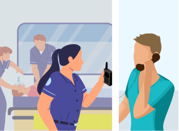 David is a staff member in the emergency department of an accident hospital. After a serious accident on a nearby highway, the call from the emergency physician in the ambulance is transferred to David as the person on duty. He is responsible for initiating communication at the hospital.