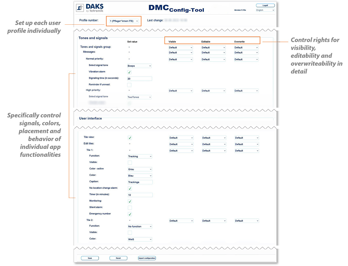 With these options, 'DAKS Mobile Client' Remote Configuration as a centralized application management goes far beyond the usual Mobile Device Management (MDM) and enables configuration at the app level instead of the device level. Especially for larger projects with many users, the 'DAKS Mobile Client' application management is highly appreciated for this purpose. The configuration profiles provide a clear overview of the various authorization levels at all times and can be adjusted centrally as required.